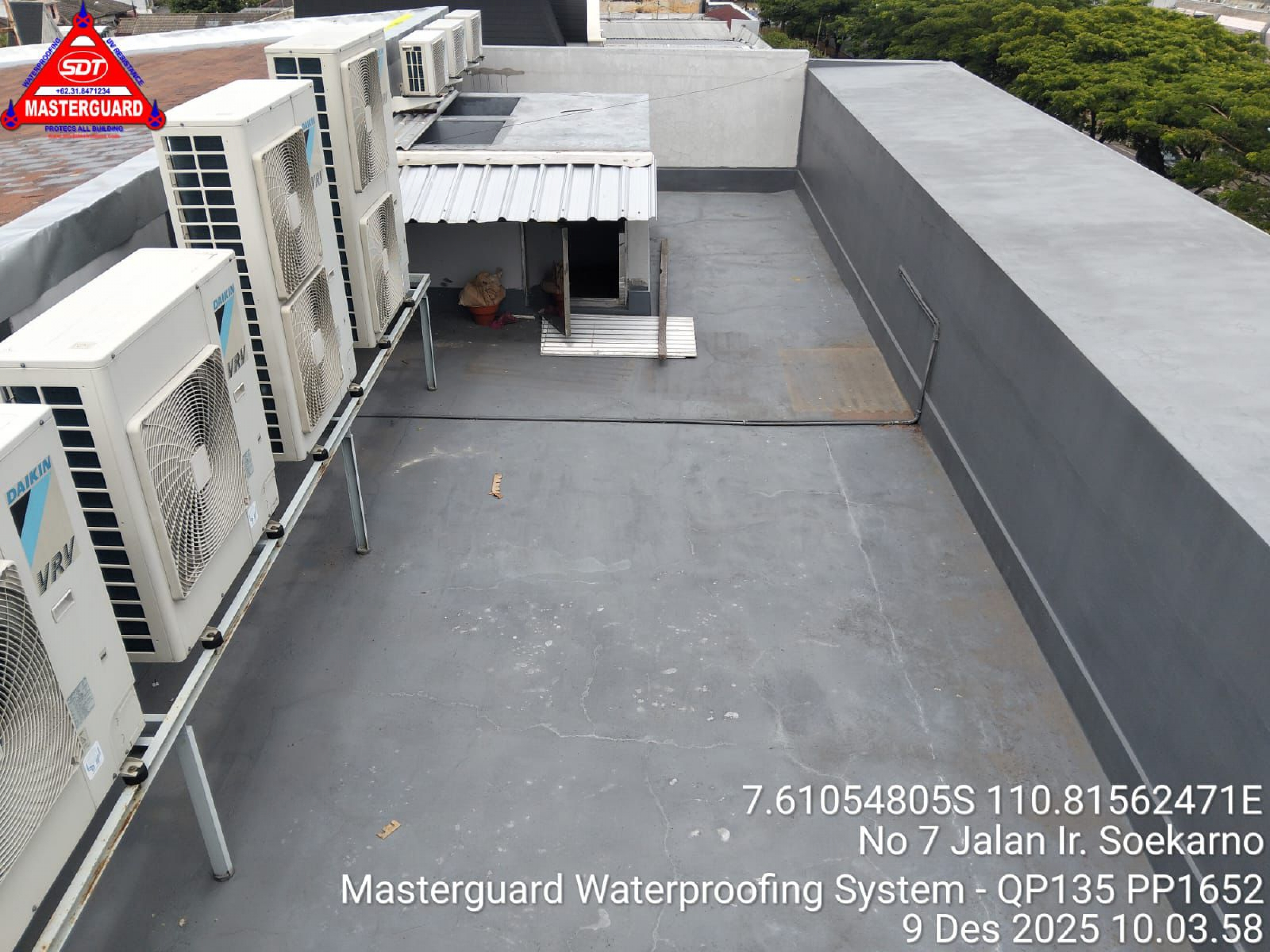 Masterguard Waterprofing System tahan suhu permukaan sampai dengan 160ºC, dimana permukaan tetap tidak lengket. Hal ini yang membuat Masterguard Waterproofing System tidak perlu lagi dilindungi oleh bahan bangunan lain di atas permukaannya dan dapat dilalui oleh pejalan kaki maupun kendaraan.